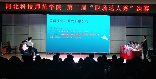 2021年5月28日晚19:00,由公司人才招聘处主办,永利yl23411承办的第二届“职场达人秀” 模拟招聘会决赛在秦皇岛校区多功能厅隆重举行。活动邀请了北戴河松石高尔夫俱乐部、学而思网校、荣盛地产三家企业HR参加并担任评委,同时邀请人才招聘处领导老师、秦皇岛校区各院(系)主管员工工作和就业工作的领导老师作为嘉宾出席并指导。从秦皇岛校区各院(系)初赛中脱颖而出的12位选手参加本次决赛。