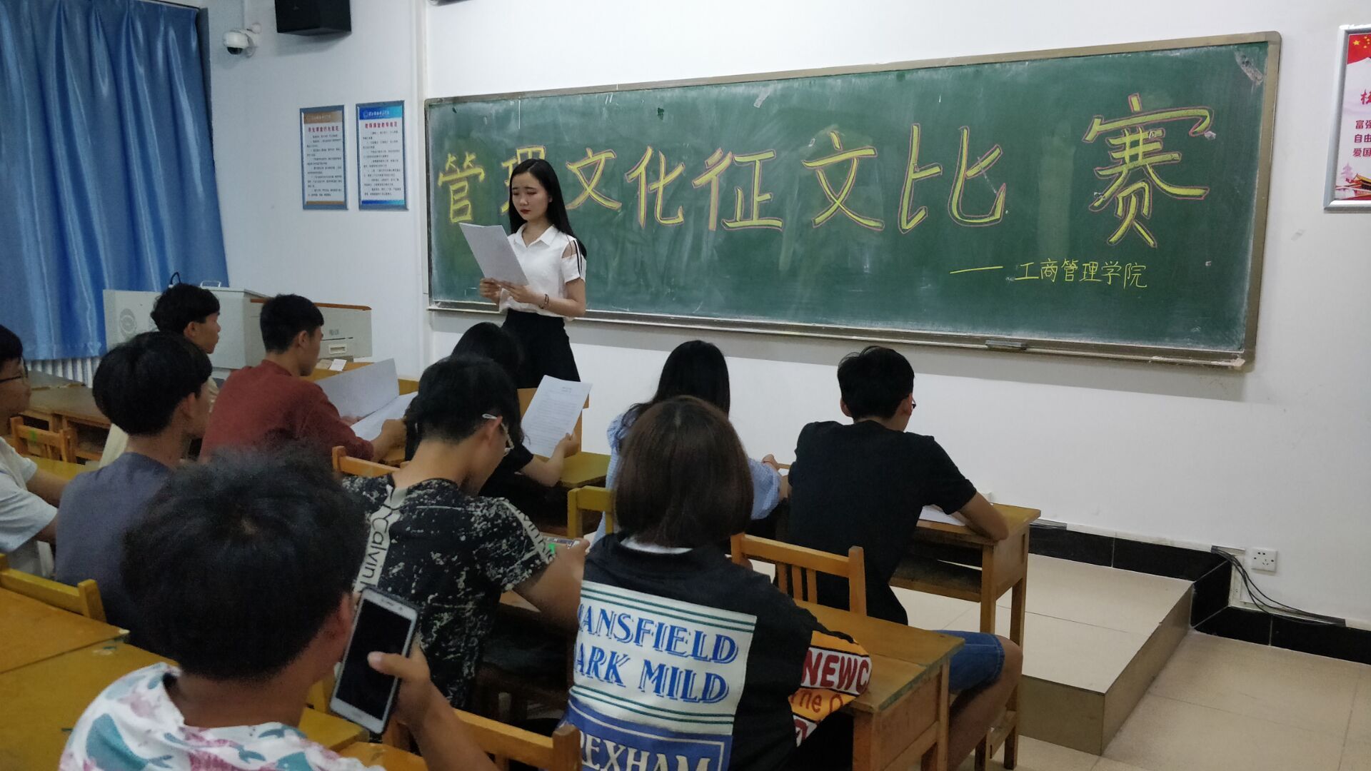 此次征文比赛分为预赛和决赛两个阶段,比赛以“对现代社会上管理类人士的认识”、“相关组织上的管理问题的认识”、“浅谈你心中的管理精神是什么”等为主要内容。经过层层选拔,最终有12篇进入决赛。决赛以自我讲解文章主题、构思为主要内容进行选拔,最终选出一等奖1名、二等奖2名、三等奖3名、优秀奖6名。